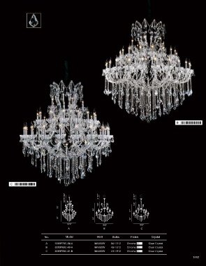 No.          Model             Watt     Bulbs      Finish      Crystal