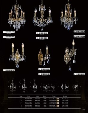 D 2039W13AB-3 MAX60W 3×E12 Antique Brass Clear Crystal J 2050W5GB-1 MAX60W 1×E12 French Gold Clear Crystal
