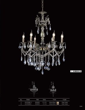 BRASS A B Φ5" Φ5" 1" 1" 120" 120" 45" 34" Φ36 Φ26" A B No. Model Watt Bulbs Finish Crystal A 2013P36AB-12 MAX60W 12×E12 Antique Brass Clear Crystal B 2013P26AB-6 MAX60W 6×E12 Antique Brass Clear Crystal 1043 1044