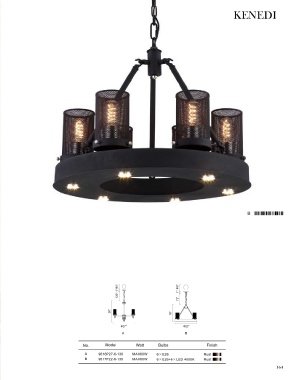VIVIAN KENEDI A B Φ5" Φ5" 1" 1" 120" 72" 26" 18" Φ27" Φ22" A B No. Model Watt Bulbs Finish A 9616P27-6-130 MAX60W 6×E26 Rust B 9617P22-6-130 MAX60W 6×E26+6×LED 4000K Rust 163 164