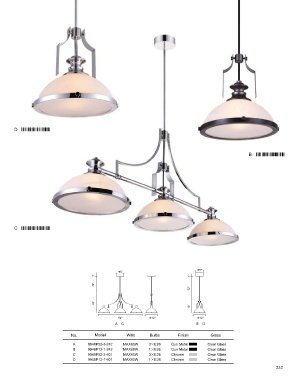 No. Model Watt Bulbs Finish Glass