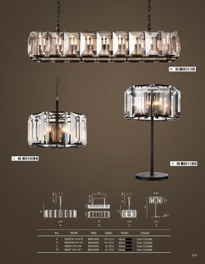 No. Model Watt Bulbs Finish Crystal