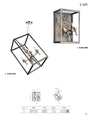 TAPI A B Φ5" 9" 11" 1" 14" 72" 14" 17" 23" A B No. Model Watt Bulbs Finish A 9891W11-2-183 MAX60W 2×E12 Luxor Silver B 9891P14-4-183 MAX60W 4×E12 Luxor Silver 307 308