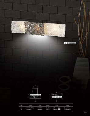 WILMA B A 17" 5" 1" 72" 30" 1" 1" 6" 5" 8" 6" 44" 33" A B No. Model Watt Bulbs Finish Crystal A 5640P44C-RC MAX40W 6×G9 Chrome Clear+Smoke B 5640W33C MAX40W 3×G9 Chrome Clear+Smoke 329 330
