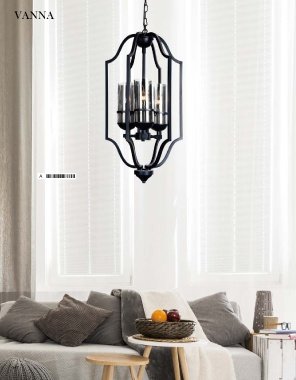 VANNA B A C Φ5" Φ5" Φ5" 1" 1" 1" 72" 120" 72" 32" 26" 28" Φ15" Φ25" Φ22" A B C No. Model Watt Bulbs Finish Glass A 9858P15-3-101 MAX60W 3×E12 Black Smoke B 9858P15-6-101 MAX60W 6×E12 Black Smoke C 9858P22-3-101 MAX60W 3×E12 Black Smoke 367 368