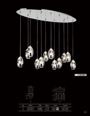 PERRIER A B Φ24" Φ34" 12" 79" 79" 6" 6" A B No. Model Watt Bulbs Finish Crystal A 5077P24C-R MAX20W 13×G4 Chrome Clear Crystal B 5077P34C-O MAX20W 12×G4 Chrome Clear Crystal 409 410