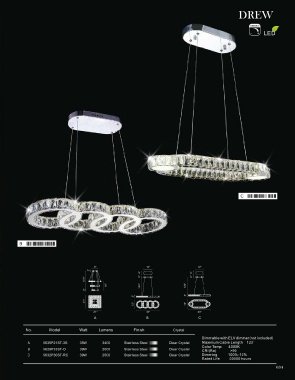 No. Model Watt Lumens Finish Crystal