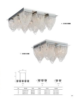FINKE B A C 18" 5" 1" 72" 8" 8" 8" 35"x6" 21"x21" 14"x14" A B C No. Model Watt Bulbs Finish Crystal A 5652P35C-RC MAX40W 5×G9 Chrome Clear Crystal B 5652C21C-S MAX40W 9×G9 Chrome Clear Crystal C 5652C14C-S MAX40W 4×G9 Chrome Clear Crystal 427 428