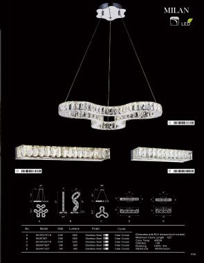 No. Model Watt Lumens Finish Crystal