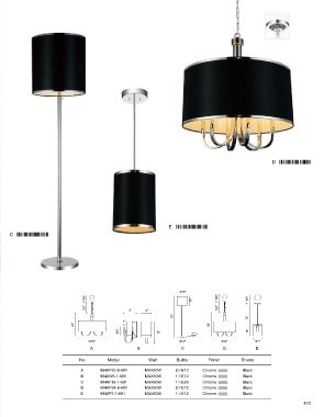 No. Model Watt Bulbs Finish Shade