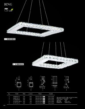 No. Model Watt Lumens Finish Crystal