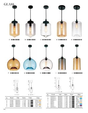 No. Model Watt Bulbs Finish Glass G 5553P12-1L MAX60W 1×E26 Black Blue B 5553P10 MAX60W 1×E26 Black Smoke I 5553P16 MAX60W 1×E26 Black Clear