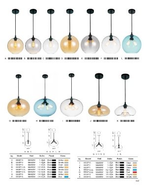 A B C D E K L No. Model Watt Bulbs Finish Glass No. Model Watt Bulbs Finish Glass