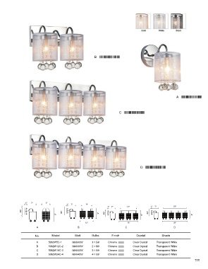 No. Model Watt Bulbs Finish Crystal Shade No. Model Watt Bulbs Finish Crystal Shade