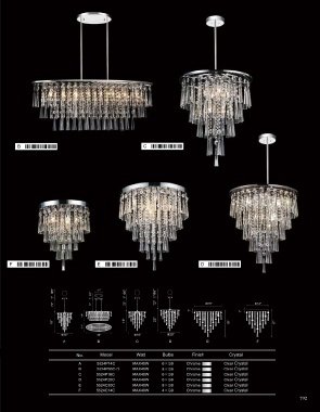 No. Model Watt Bulbs Finish Crystal