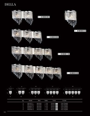 No. Model Watt Bulbs Finish Crystal No. Model Watt Bulbs Finish Crystal
