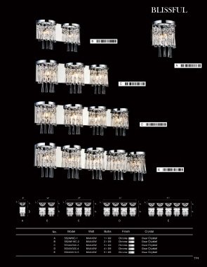 No. Model Watt Bulbs Finish Crystal No. Model Watt Bulbs Finish Crystal