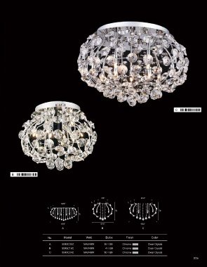 JOSIE A C B Φ8" Φ16" 1" 1" Φ28" 1" 15" 16" 17" Φ35" Φ16" Φ24" A B C No. Model Watt Bulbs Finish Color A 5043C35C MAX40W 15×G9 Chrome Clear Crystal B 5043C16C MAX40W 4×G9 Chrome Clear Crystal C 5043C24C MAX40W 10×G9 Chrome Clear Crystal 825 826