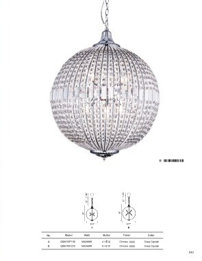 GLOBE A B Φ5" Φ5" 1" 1" 72" 72" 24" 28" Φ18" Φ22" A B No. Model Watt Bulbs Finish Color A QS8370P18C MAX60W 4×E12 Chrome Clear Crystal B QS8370P22C MAX60W 6×E12 Chrome Clear Crystal 841 842