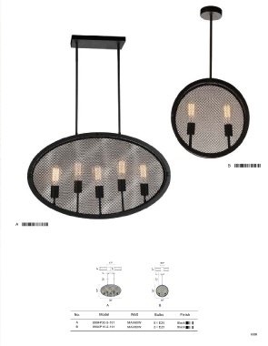 TIGRIS B A 12" Φ5" 4" 5" 4" 1" 1" 72" 72" 18" 16" 30" 16" A B No. Model Watt Bulbs Finish A 9904P30-5-101 MAX60W 5×E26 Black B 9904P16-2-101 MAX60W 2×E26 Black 079 080