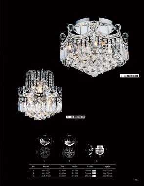 AMANDA A B C Φ16" Φ11" 1" 1" 15" 13" 1" 13" 9" Φ20" Φ16" 7" 12" A B C No. Model Watt Bulbs Finish Crystal A 8421C20C MAX60W 8×E12 Chrome Clear Crystal B 8421C16C MAX60W 6×E12 Chrome Clear Crystal C 8421W12C MAX60W 3×E12 Chrome Clear Crystal 933 934