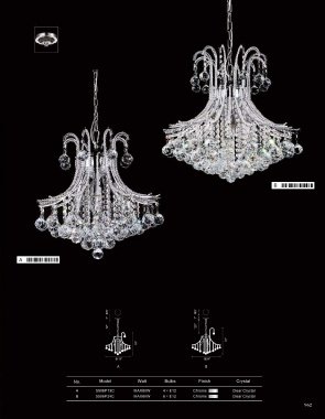 IDYLLIC B A Φ5" Φ5" 1" 1" 72" 120" 31" 18" Φ19" Φ24" A B No. Model Watt Bulbs Finish Crystal A 5506P19C MAX60W 4×E12 Chrome Clear Crystal B 5506P24C MAX60W 6×E12 Chrome Clear Crystal 961 962